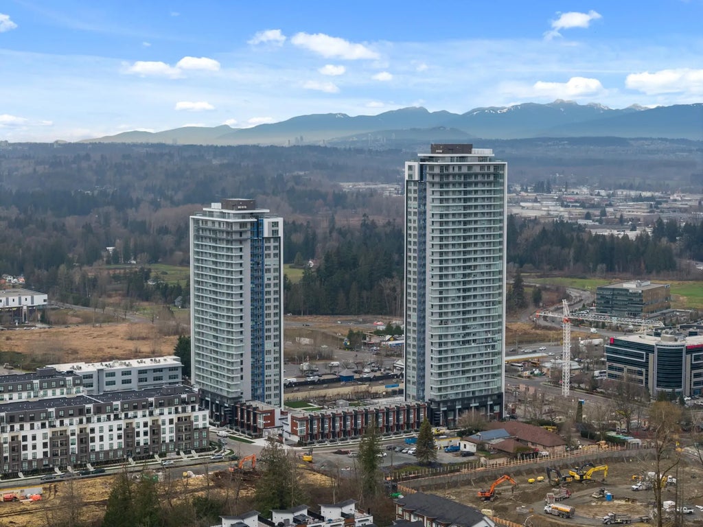 SUB-PENTHOUSE in The Towers by Vesta - Perched on the 25th floor, this stunning 3-bed + den corner unit offers unparalleled southwest views of the city and valley. The spacious open-concept layout boasts high-end finishes, air conditioning, quartz countertops, and premium appliances, including a 5-burner gas cooktop. Enjoy your private balcony, perfect for soaking in unobstructed sunsets. Conveniently located in vibrant Willoughby, steps from boutique shops, dining, schools, and transit, with quick access to Hwy 1. Building amenities include a fitness center, yoga studio, basketball court, putting green, dog wash, playground, BBQ lounge, community garden, and more. Includes two parking spaces, a storage locker, and EV rough-in. Move-in ready and GST paid—experience Latimer Heights’ best!
