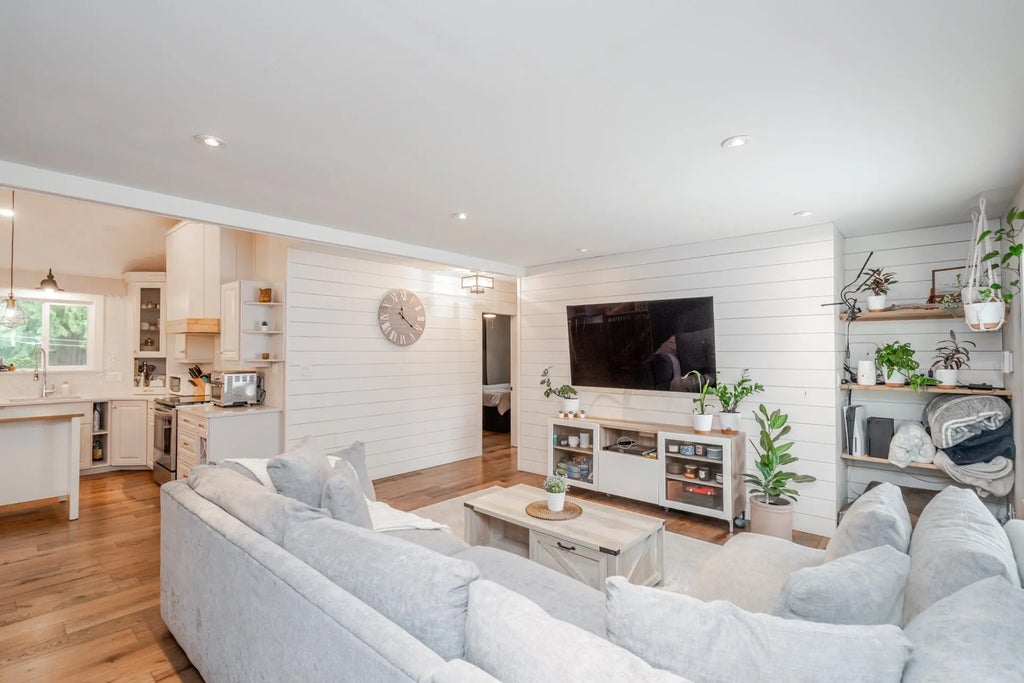 Beautifully updated 5 bed, 3 bath home offers exceptional value and comfort in one of Abbotsford’s most family-friendly neighbourhoods. Hardwood flooring and an expansive open-concept layout connecting the living, kitchen, and dining areas. Vaulted ceilings, custom cabinetry, and tasteful shiplap accents create a warm, welcoming atmosphere. Walk out through French doors to the private deck—ideal for outdoor entertaining/cooking. Primary suite has been thoughtfully redesigned to include a luxurious ensuite featuring marble double sinks. Downstairs has 3 bedrooms, 5pc bathroom, large laundry, flex and storage room. With generous-sized bedrooms and three full bathrooms, there's ample space for a growing family or guests. Fully fenced spacious yard has fruit trees and a generous storage shed!