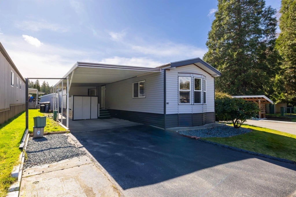 Welcome to DEER CREEK ESTATES, a desirable adult-oriented community surrounded by nature. This completely renovated 2 bed, 2 bath offers 936sqft of bright living space with vaulted ceilings & large windows that bring in natural light. Updates from top to bottom include NEW gyprock walls & exterior siding with new vinyl floors throughout, along with all new bathroom fixtures & equipped w/ AC. The renovated kitchen includes custom built-ins for storage, ample counter space, and a separate dining area perfect for entertaining. The spacious primary suite includes a large closet and a private en-suite. There's convenience of a parking pad plus covered parking, a connected WORKSHOP, private patio, and an additional shed for extra storage options. Move-in ready & ideal for downsizers!