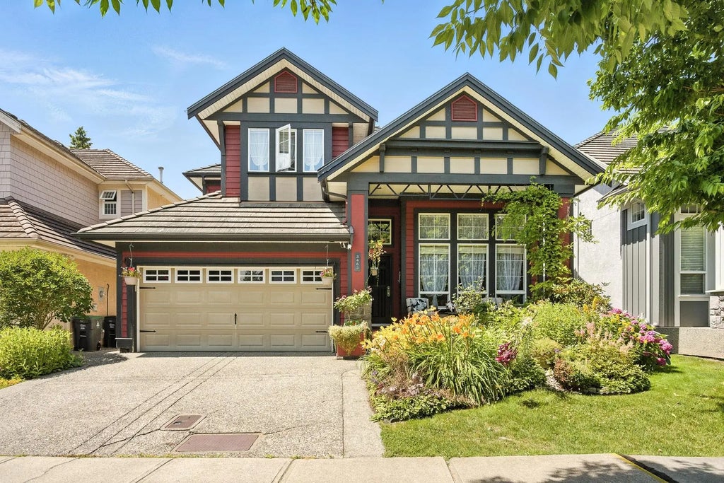 Beautiful Fox Ridge home in desirable West Rosemary Heights! This 4 bed, 4 bath home features soaring 18’ ceilings in the living room, a formal dining area, and a gourmet kitchen with granite counters, island, s/s appliances, and quality cabinetry, opening to a cozy family room. Upper level offering spacious primary bedroom, WIC, 5-piece ensuite plus 2 more bedrooms with a shared bathroom. The finished basement offers a large rec/media room, 4th bedroom, full bath, flex room and separate entry. Double garage with high ceilings and extra storage. Professionally landscaped front and west-facing backyard with decks, patio, mature trees, rose bushes, and vibrant flowers—ideal for entertaining or relaxing. Located on a quiet street near schools, shops, parks, transit, and Hwy 99. A must-see!