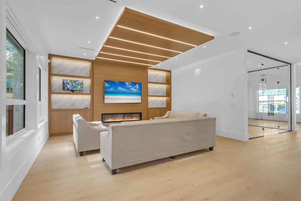 NO GST.Welcome to Havenwood in Brookswood Langley. This luxury home with open layout plan has modern kitchen with large Island,quartz countertops,high end appliances , large Spice kitchen .OFFICE with GLASS WALLS and one bedroom with esuite on the main floor. Upper floor has 4 large bedrooms each with ensuite and big loft area. Laundry machines on main and upper floor for your convenience. Basement has large recroom with bar and full bath. 2+1 basement suites each with their own laundry.Radiant floor heat on all three floors.Greenbelt on the back for privacy.
