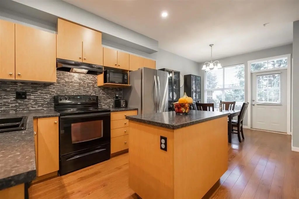 This 2 bedroom townhouse in located in the heart of Willoughby . Tucked in the the far back of this family oriented complex this spotless unit is footsteps to everything. Laminate floors on main, 9" ceiling, laminate kitchen kitchen countertop & island to entertain. Stainless steel fridge & upgraded kitchen backsplash. Spacious living area with warm paint tones & gas fireplaces. Powder washroom on main floor. Door leads to back South facing deck. A perfect spot for BBQ's. 2 large bedrooms upstairs with laminate floors & laundry area for added convenience. 2 car tandem garage with extra storage. Fantastic complex and down the street from Costco, Save on, restaurants & more. Don't miss this opportunity. Available in Willow Edge.