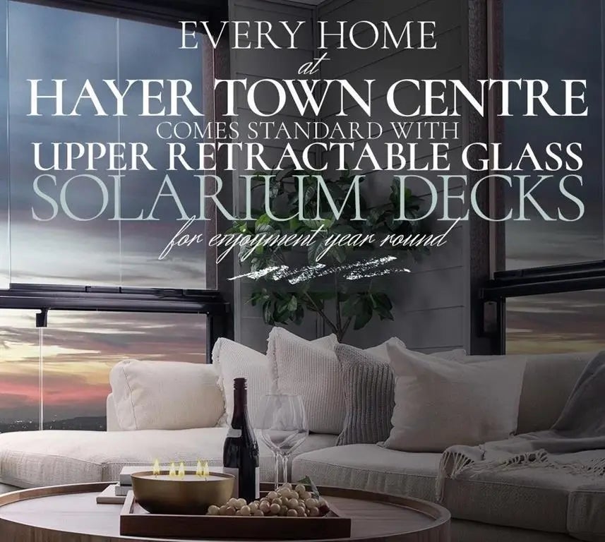 SELLER IS OFFERING THE BUYER A $45,000 DECORATING CREDIT!!! This brand new sub penthouse 2 bed, 2 bath corner home with A/C by award-winning Hayer Builders Group offers 930 sq/ft of stylish interior space + a 168 sq/ft retractable glass Solarium giving you 1,100 sq/ft of year-round indoor/outdoor living. Enjoy air conditioning, 2 parking, 1 locker & hotel amenities featuring fire pits, vertical garden, dog park, premium shops & restaurants. The N-PLAN layout is designed for full-size furniture with upscale finishes, premium appliance package, blinds, quartz counters, gas stove, laminate flooring throughout & closet organizers. The spacious bedrooms are on opposite side of the home giving you complete privacy. Estimated completion mid Nov. 2025, GST applies. ALL OFFERS WILL BE CONSIDERED.