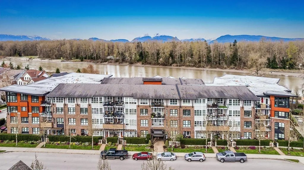 Beautiful Fort Langley at its best! Close to shops, restaurants, cafes and trails. Come and enjoy this top floor unit with vaulted ceilings and river views from the living room and both bedrooms. The primary bedroom walk-in-closet has been organized with California Closets and the bathroom has a heated floor. Some of the upgrades include fresh paint, shiplap and wood trim. New barn door in the living room, new stone fireplace, built in shelving units, custom drapes, SS appliances and modern light fixtures. The second bedroom is multi functional as a gust room with a Murphy bed, an office or a flex space. The unit comes with two parking spaces and a storage unit. The building is 55 plus and pet friendly.