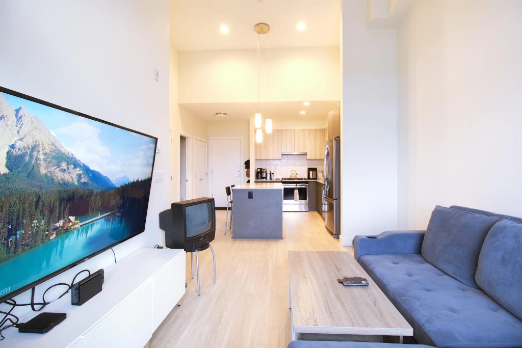 Nestled in the charming city of Delta, this furnished condo exudes elegance and comfort, offering a tranquil retreat with breathtaking mountain views. Spanning 696 square feet, the one-bedroom, one-bathroom residence is thoughtfully designed to cater to modern living. The condo features high ceilings that enhance the sense of space and openness, while hardwood flooring adds a touch of warmth and refinement. A north-facing balcony provides a perfect vantage point for enjoying the serene mountain vistas, creating an ideal space for relaxation and unwinding. For those who work or study from home, the condo offers both an office den and a dedicated office area, providing ample space for productivity and focus.