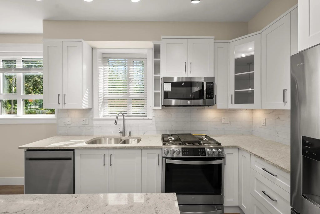 2-bedroom, 1-bath at Kensington Gate by Quadra Homes—completing November 2025! Features include GE stainless steel appliances, gas cooktop, convection oven, quartz countertops, white shaker cabinets, heated tile bathroom floors, A/C, 9' ceilings, and oversized windows. Enjoy a spacious 280+ sq/ft wrap-around patio with gas BBQ hookup. Includes underground parking, EV charger access, and a storage locker. Fantastic walkable location near schools, shops, and everyday amenities. OPEN HOUSE SATURDAY September 6 1-3pm