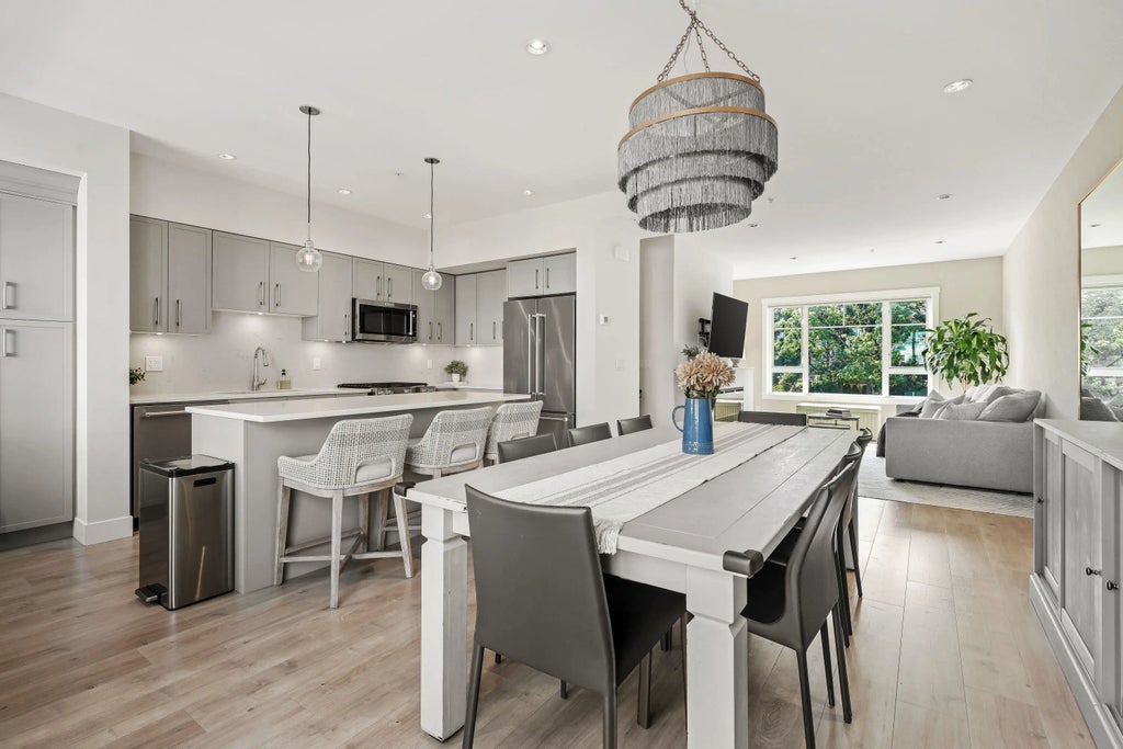 FANTASTIC 4-bedroom townhome in Murrayville’s sought-after Fraser, quality built by Zenterra! Bright and open floor plan with 9’ ceilings on the main floor and plenty of windows. Features include wide plank laminate flooring, a spacious living room, and a gourmet kitchen with a huge centre island, KitchenAid appliances including a gas stove, and a wine cooler. Generous dining area with sliding door to the deck—perfect for BBQs and entertaining. Upstairs offers a primary suite with a stunning ensuite and walk-in closet, plus 2 additional nice size bedrooms. 4th bedroom (office) is by the entrance. Large 2-car garage with ample storage. A/C, on-demand hot water, visitor and street parking. Amazing location! Just a short walk to WC Blair Rec Centre, parks, schools, and shopping!