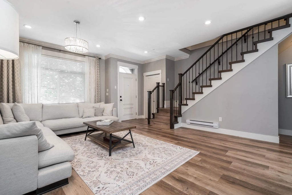 Welcome to this charming 5 bed, 4 bath row home in desirable Willoughby Heights. Offering 2,241 sq. ft. of thoughtfully designed living space, the main floor features an open layout with 8'11 ceilings, a bright living and dining area, modern kitchen, and convenient powder room. Upstairs you’ll find 3 spacious bedrooms including a primary retreat with walk-in closet and ensuite, plus a full bathroom. The lower level offers 2 additional bedrooms, a rec room, separate entrance, and easy suite potential. Enjoy outdoor living on the large patio and the convenience of a detached garage. Ideally located, this home is walking distance to Lynn Fripps Elementary and Willoughby Town Centre, with parks, shopping, and amenities nearby—perfect for families or investors alike. BONUS: NO STRATA FEES!