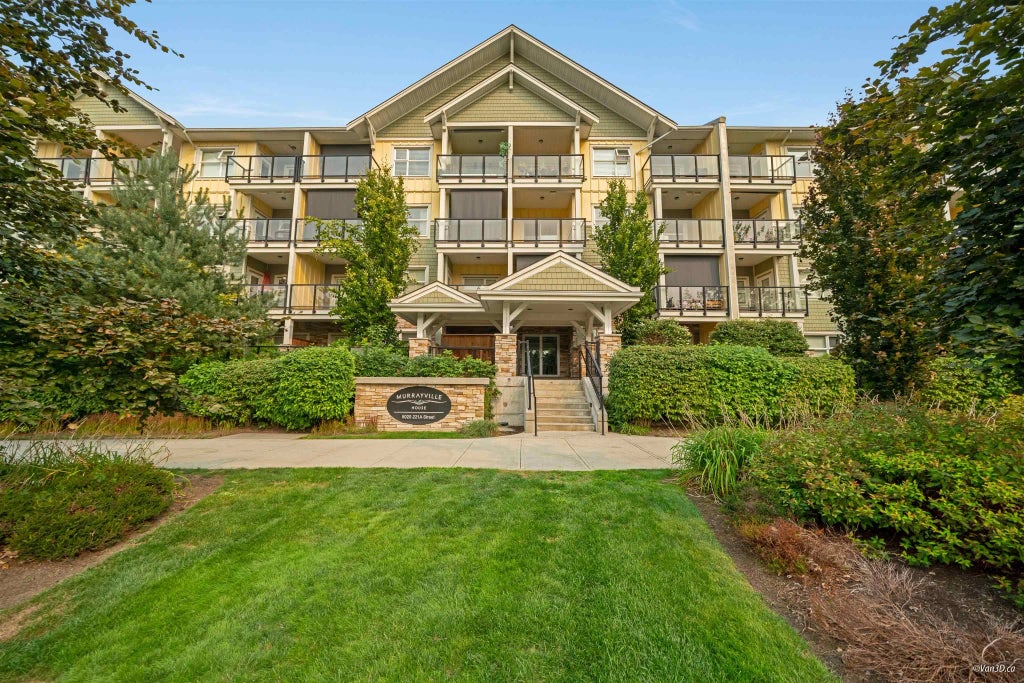 Murrayville House ! Large 1000 sq/ft 2 bedroom and den, 2 bathroom home, many with a huge balcony that extends your living and entertaining space into the outdoors. A superior level of finishing's includes sleek stainless steel appliances, solid quartz counter tops shaker style cabinetry and laminate wood floors. Crown mouldings and extensive wood trim. Central courtyard with lavish water features, tranquil seating areas and private walkways. Includes 2 parking (12 and 35) and a storage locker (260) and 1 pet allowed.