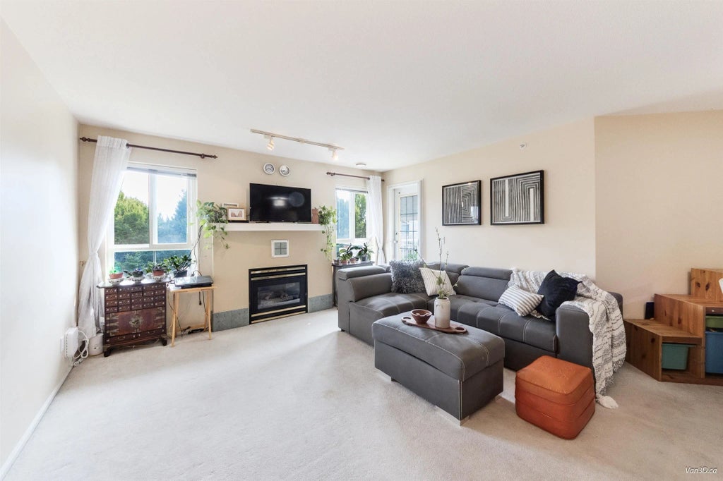"THE DAVENPORT" South-Facing Penthouse with 2BD 2BA! This top-floor penthouse facing the courtyard boasts over 1,000 sqft of living space, featuring a cozy GAS fireplace and a large private patio offering exceptional privacy. Strata fees include GAS & HOT WATER, and the home comes with 2 PARKING stalls & 1 storage locker. Building amenities include a bike room, gym, storage, party room, and a fully fenced dog park! Well-maintained complex with recent UPGRADES in the past 5 years, including a new ROOF, REPIPING, and new FENCING. Ideally located within walking distance to shopping (Superstore & Willowbrook Mall), parks, schools, transit, and the future SkyTrain station. Call today!