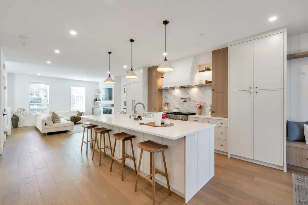 Stunning one of a kind row home in Milner Heights offering 2471 sq ft, 4 bdrms and 4 bthrms. The open floor plan flows seamlessly blending luxury and functionality. The renovated culinary haven has high end panel faced Jenn -Air appliances including gas range, pot filler, massive island, & custom cabinetry. Step out to the extended covered deck with gas outlet to barbeque year round. One of the widest and largest yards in the area! Up has 3 well sized bdrms w/ primary offering vaulted ceiling, 4 pc ensuite and walk in closet. Head down to find a rec rm, another bdrm and 4 pc bath. Lots of storage in this home! Parking is no problem with the single garage and 2 spots on either side. This is a great location ~ walk to trails and all amenities and shopping right outside your door! Call today!