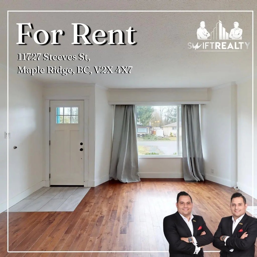 Welcome to West Maple Ridge! This spacious 4 Bed, 2 Bath home offers the perfect balance of privacy and comfort in a family-friendly neighborhood. Featuring hardwood flooring, a cozy fireplace, and in-unit laundry, this home provides warmth and functionality for everyday living. The property includes washer/dryer, fridge, stove, microwave, and 2–3 parking spaces right in front of the house. A large backyard makes it ideal for outdoor living and entertaining, with pets welcome upon approval. LOCATION: Conveniently situated just 2 minutes from public transit, this home offers easy access to schools, shopping, restaurants, family childcare, parks, golf courses, the West Coast Express, Golden Ears Bridge, and the local hospital. Text Soheil - 604-488-3131