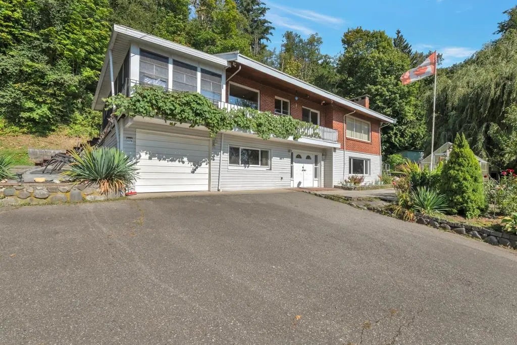 Set on 2.7 private acres, this 2,600 sq ft BRICK home blends character and potential. Top quality 9 year old torch on roof, 2 ply SBS membranes. Two grand, wood-burning fireplaces on each level, a 28’6x10’9 enclosed sunroom (which adds an extra 300 sqft), and an option for a basement suite makes it perfect for versatile living. Step onto the south-facing patio to take in Fraser River views. Outside you'll find a fully PERMITTED 1,800 sqft workshop with power and water, multiple sheds, and 400-AMP SERVICE. With 2 driveways, greenhouse, garden, chicken coop, and even a thriving monkey tree, this property has country living with city convenience—explore the RS-3 zoning for endless opportunities!
