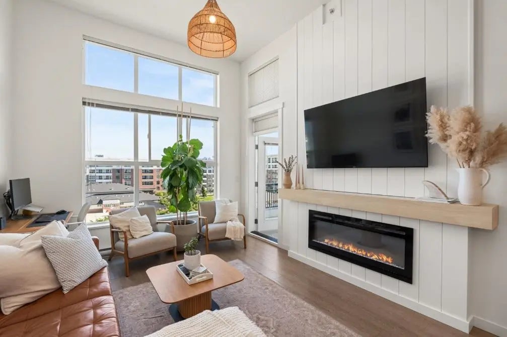 Highly sought-after north-facing penthouse with courtyard and panoramic mountain range view. This premium 2-bedroom and 2-bathroom home is set apart by its extraordinary location, unique soundproofing, and deluxe finishes. Soaring 12’ ceilings and oversized windows flood the space with natural light. Luxurious storage and lighting upgrades throughout. Boasting 853 sqft of open concept living space with an additional 102 sqft private balcony, 2 private and conveniently located parking stalls, and an oversized storage locker, this home has it all. Built by Polygon, this Union Park home boasts access to resort-style amenities featuring an outdoor pool, jacuzzi, exercise room, indoor basketball court/gymnasium, BBQ terrace, community gardens, and more.