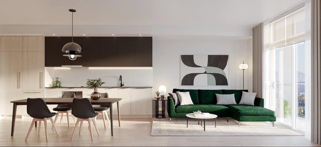 Georgetown 2 by Anthem - The 2nd phase in Surrey City Centre's largest Master Planned community. Located steps from Surrey Central Skytrain station, SFU, KPU, the future UBC Campus, countless shops, restaurants & services. Georgetown is in the centre of it all. At completion, Georgetown 2 will feature nearly 18,000 SQFT of indoor & outdoor amenity space including a gym, social lounge, games room, community garden, & outdoor lounge and BBQ area. This 1 bed Bla plan features premium 24" integrated appliances, durable quartz countertops & a generous outdoor balcony. An energy efficient heat pump offers heating and cooling for year-round comfort.