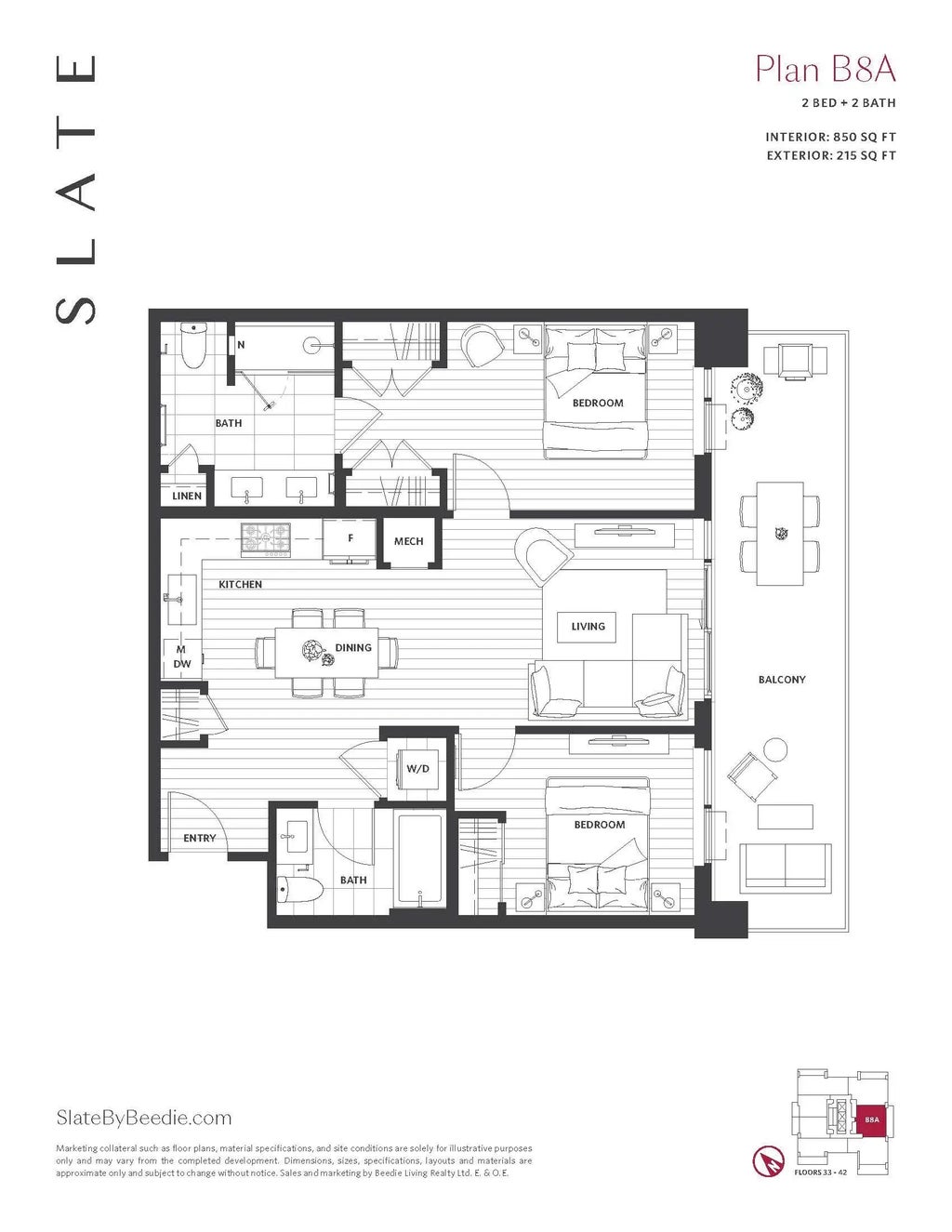 Discover this two-bedroom home at SLATE by Beedie Living. Situated on the 38th floor with refined interiors by BYU Design, air conditioning and floor-to-ceiling windows, enjoy comfort, stunning views and an abundance of natural light in your home year-round. This 850 SF home features an open floorplan with opposite bedrooms for enhanced privacy, as well as a spacious balcony for outdoor entertaining. In the kitchen, discover high-performance Fisher & Paykel appliances. At SLATE, refined amenities elevate your lifestyle's needs, from a state-of-the-art Health Club, to a large social lounge and more. Located in the heart of Brentwood, SLATE is built by renowned developer Beedie. Schedule your appointment today.